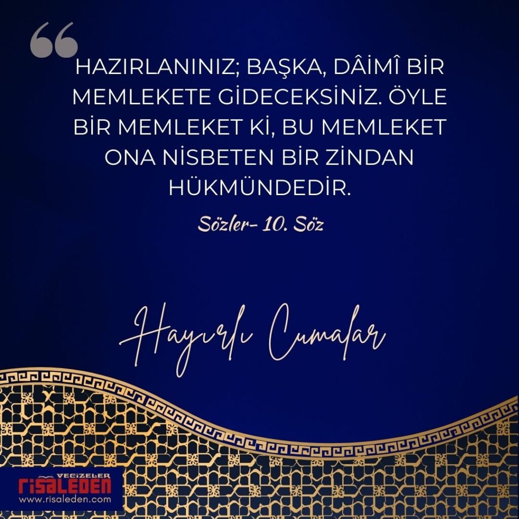 “Ben ne diyeceğim? Daha buna karşı birşey denebilir mi? Gündüz ortasında güneşe karşı söz söylenir mi? Yalnız, derim ki: ’Elhamdülillâh, yüz bin defa şükür olsun ki, vehim ve hevâ tahakkümünden, nefis ve heves esâretinden kurtulup, dâimî hapis ve zindandan halâs oldum. Ve inandım ki, bu karmakarışık, kararsız misafirhânelerden başka ve kurb-u şâhânede bir diyâr-ı saadet vardır; biz de ona namzediz.’”